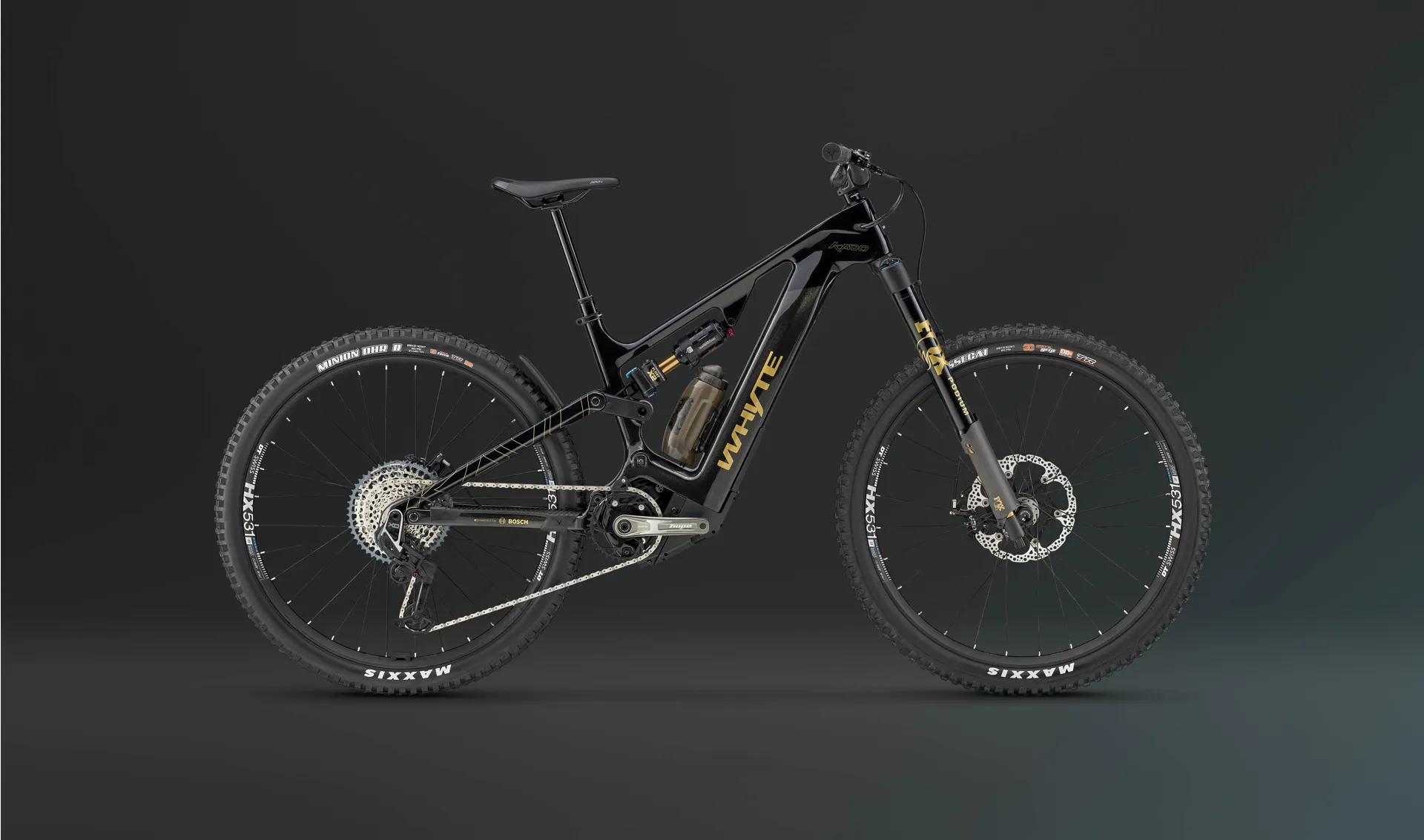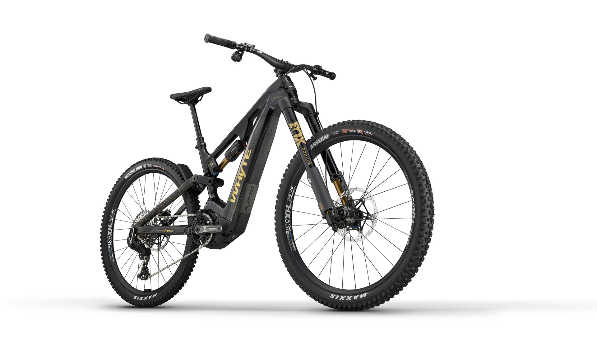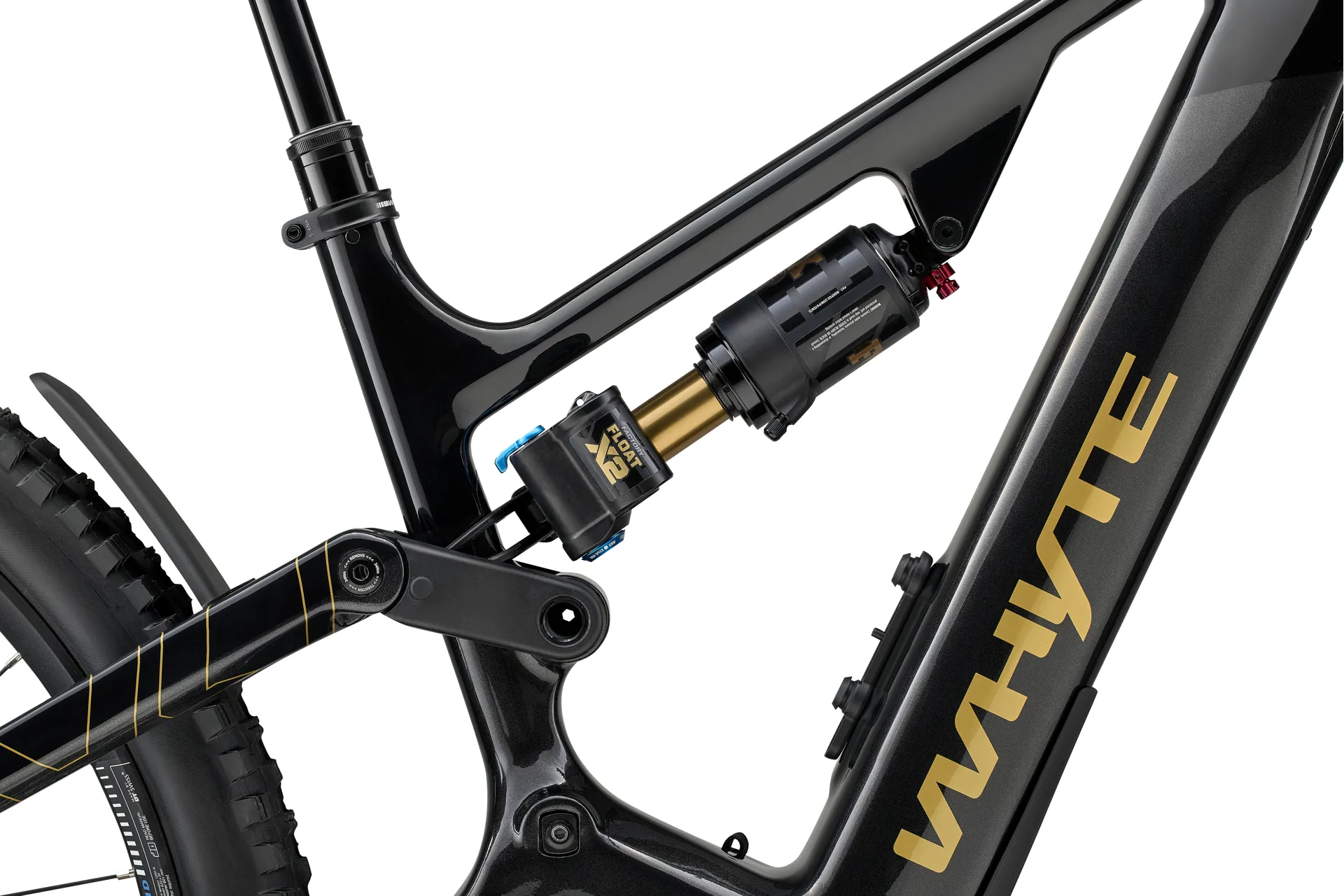| Rear shock: | Fox Float X2 Factory Series, EVOL, lock out, 230mm x 57.5mm, custom tuned for Whyte |